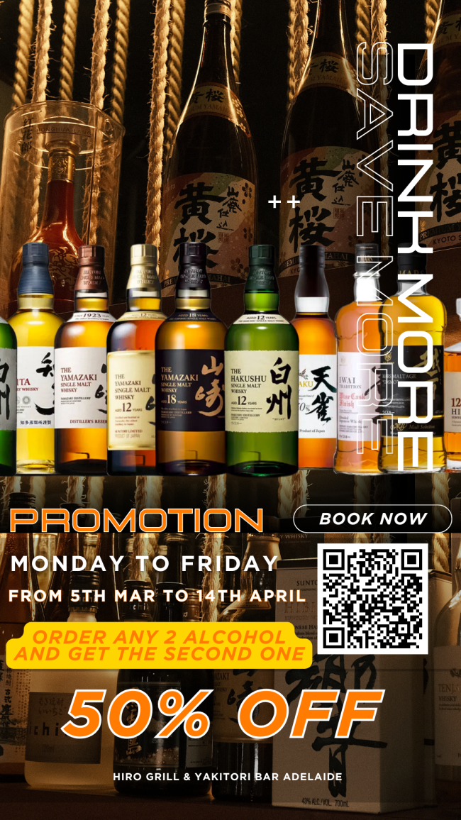 NEW PROMOTION FROM 5TH MAR TO 14TH APRIL!!! GET YOUR DRINK, ORDER ANY 2 ALCOHOL AND GET THE SECOND ONE 50% OFF!!!